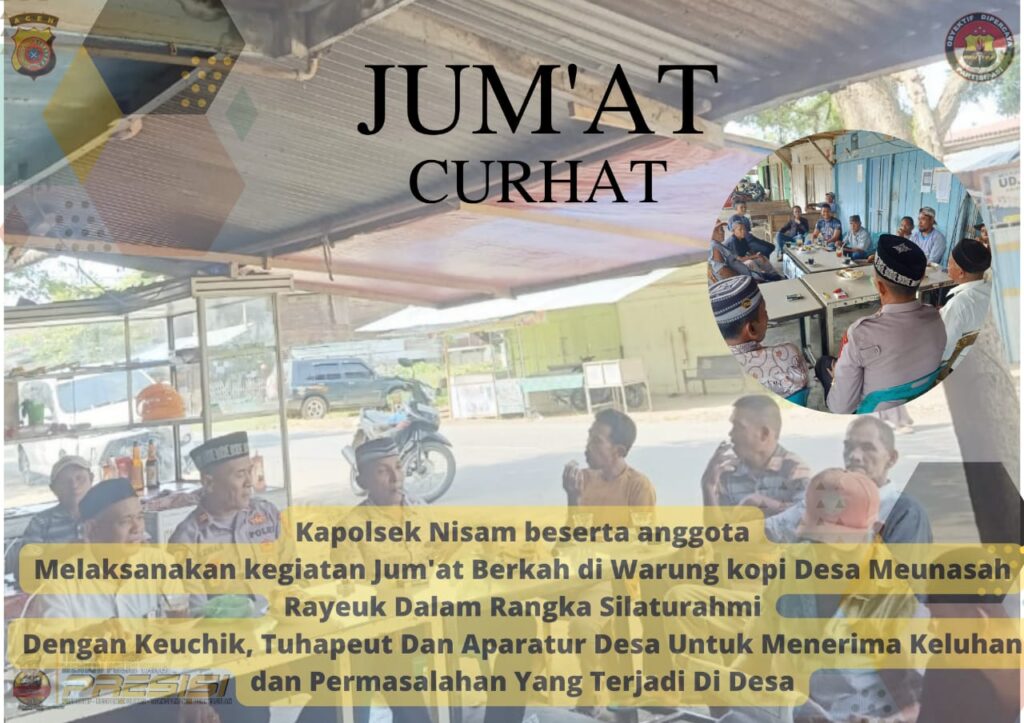 LHOKSEUMAWE - Jumat Curhat bersama Kapolsek Nisam, Iptu Azharuddin, warga Gampong Meunasah Rayeuk, Nisam, Aceh Utara, wilayah hukum Polres...