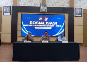 Lhokseumawe — Wakapolres Lhokseumawe Kompol Salmidin S.E., M.M memimpin kegiatan Sosialisasi Whistle Blowing System (WBS) yang dihadiri oleh sejumlah personil...