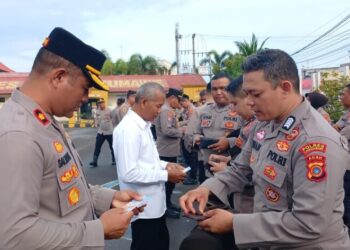 Lhokseumawe — Wakapolres Lhokseumawe Kompol Salmidin S.E., M.M memimpin pelaksanaan Penegakan Ketertiban dan Disiplin (Gaktiblin) terhadap personel Polres Lhokseumawe usai...