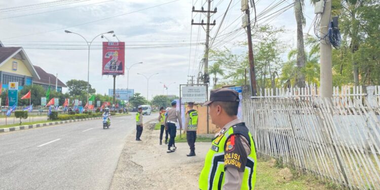 LHOKSEUMAWE – Personel gabungan Polres Lhokseumawe melaksanakan pengamanan di sekitar lokasi kampanye tatap muka dan pelatihan para saksi Calon legislatif (Caleg) di wilayah hukum Polres Lhokseumawe, Minggu (10/12/2023).