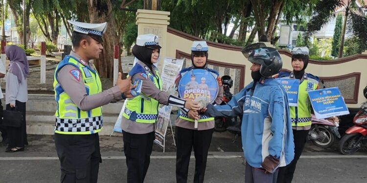 LHOKSEUMAWE – Polantas Lhokseumawe bekerjasama dengan Komunitas Jum’at Berkah melaksanakan kegiatan Jumat Barokah dalam rangka Operasi Patuh Seulawah 2024, Jum’at (19/7/2024) pagi.