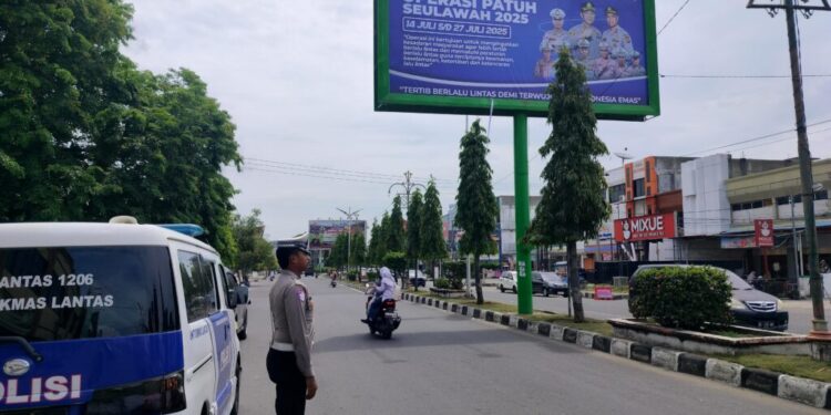 Lhokseumawe – Dalam rangka mendukung pelaksanaan Operasi Patuh Seulawah 2025, Satuan Lalu Lintas (Satlantas) Polres Lhokseumawe gencar melakukan sosialisasi kepada masyarakat, salah satunya melalui pemasangan spanduk dan baliho imbauan tertib berlalu lintas, Senin siang (14/7/2025).