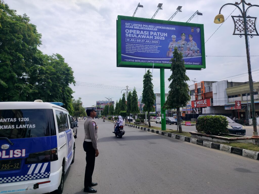 Lhokseumawe – Dalam rangka mendukung pelaksanaan Operasi Patuh Seulawah 2025, Satuan Lalu Lintas (Satlantas) Polres Lhokseumawe gencar melakukan sosialisasi kepada masyarakat, salah satunya melalui pemasangan spanduk dan baliho imbauan tertib berlalu lintas, Senin siang (14/7/2025).