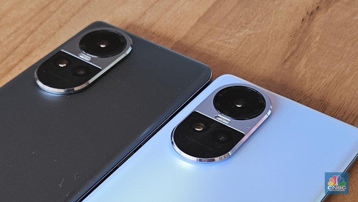 Dua HP yang terlihat mirip kemungkinan besar adalah Oppo Reno 10 reguler dan Pro. Satu produk tampil dengan panel kamera yang beda sendiri, mirip seperti Oppo Reno 10 Pro Plus yang sudah diperkenalkan di Malaysia.