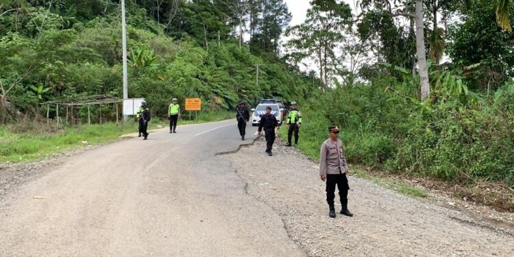 LHOKSEUMAWE – Polantas Lhokseumawe memberi kenyamanan kepada pengguna jalan raya di jalur wisata Gunung Salak, Aceh Utara, wilayah hukum Polres Lhokseumawe, Kamis (27/4/2023).