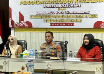 LHOKSEUMAWE – Dalam upaya memperkuat sinergi lintas sektor dalam bidang pendidikan, Polres Lhokseumawe bersama Bunda PAUD Kota Lhokseumawe menandatangani nota ...