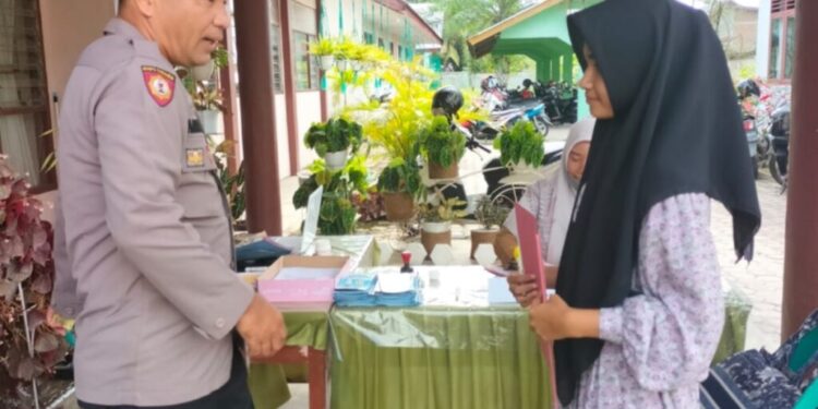 LHOKSEUMAWE – Bhabinkamtibmas Polsek Muara Batu memantau proses Penerimaan Peserta Didik Baru (PPDB) di SMA Negeri 1 Muara Batu, Aceh Utara, wilayah hukum Polres Lhokseumawe, Selasa (28/2023), dalam kegiatan ini personel juga menyampaikan pesan Kamtibmas.