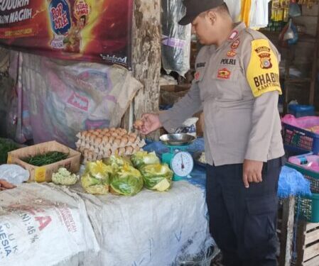 LHOKSEUMAWE – Personel Polsek Meurah Mulia melaksanakan patroli dan memantau stok sembako di Pasar Keude Karieng, Kecamatan Meurah Mulia, Aceh Utara, wilayah hukum Polres Lhokseumawe, Minggu (29/10/2023) pagi.