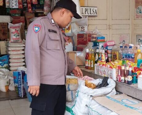 LHOKSEUMAWE – Personel Polsek Samudera mendatangi pedagang di pasar tradisional di Kecamatan Samudera, Aceh Utara, wilayah hukum Polres Lhokseumawe untuk memantau stok sembilan bahan pokok (sembako), Minggu (14/7/2024).