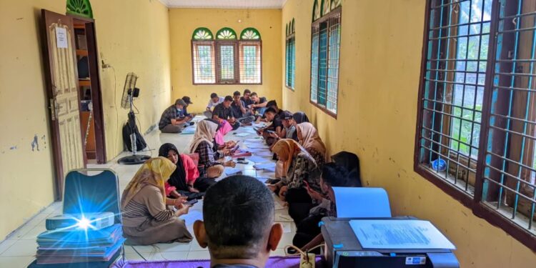 Lhoksukon – Panitia Pengawas Pemilu Kecamatan (Panwascam) Langkahan, Aceh Utara, Minggu, 29 September 2024, menggelar rapat dengan para Pengawas Pemilu Lapangan (PPL) di Kantor Panwascam setempat. Dalam pertemuan tersebut, masing-masing PPL ditugaskan menginput data dirinya sendiri untuk diserahkan ke Panwascam.