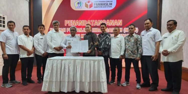 Penyerahan dana ini diresmikan melalui penandatanganan Naskah Perjanjian Hibah Daerah (NPHD) yang dilakukan oleh Pj Bupati Aceh Utara, Mahyuzar, dan Ketua Panwaslih Aceh Utara, Sudirman, pada hari Rabu (24/7).