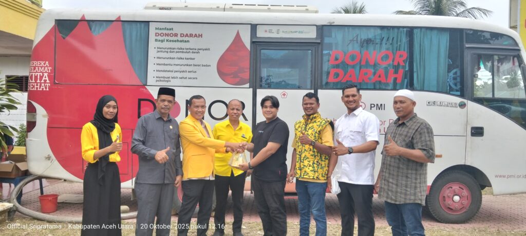 Aceh Utara – Dalam rangka memperingati Hari Ulang Tahun (HUT) ke-61 Partai Golkar, Dewan Pimpinan Daerah (DPD) II Partai Golkar Kabupaten Aceh Utara menggelar serangkaian kegiatan bakti sosial pada Senin (20/10/25). Kegiatan ini dipusatkan di Kantor Partai Golkar Aceh Utara atau yang dikenal dengan sebutan ‘Rumah Kuning’.