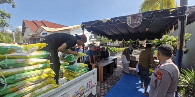 Lhokseumawe – Personil Polsek Banda sakti, Polres Lhokseumawe kawal Bulog Lhokseumawe menggelar pasar murah beras SPHP di halaman Kantor Bulog Kota Lhokseumawe, Jalan T. Hamzah Bendahara, Desa Simpang Empat, Kecamatan Banda Sakti, Senin (01/12/2025) sekitar pukul 10.00 WIB. Hal ini bertujuan untuk membantu warga yang terdampak banjir dan menghadapi kelangkaan beras di pasaran.