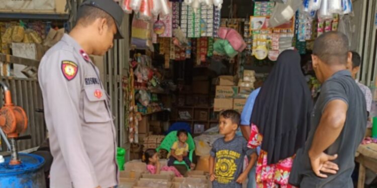 LHOKSEUMAWE – Porsonel Polsek Samudera rutin menyambagi pedagang guna memastikan stok sembako di pasar Kecamatan Samudera, Aceh Utara, wilayah hukum Polres Lhokseumawe aman, Kamis (1/6/2023).