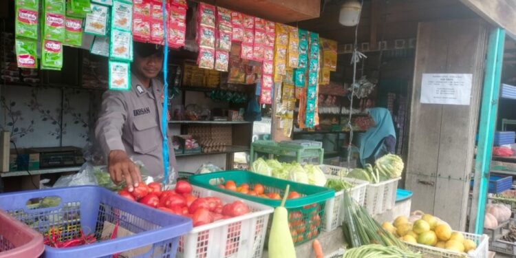 LHOKSEUMAWE – Pastikan stok sembako stabil jelang bulan suci Ramadhan, personel Polsek Dewantara, Polres Lhokseumawe blusukan ke pasar Keude Krueng Geukueh, Dewantara, Aceh Utara, wilayah hukum Polres Lhokseumawe, Kamis (2/3/2023).