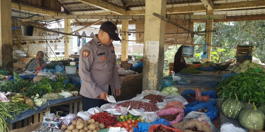 LHOKSEUMAWE – Pastikan stok sembako stabil pasca lebaran Idul Fitri 1444 H, personel Polsek Nisam, Polres Lhokseumawe sambang pedagang di pasar tradisional dan toko kelontong, Rabu (3/5/2023).