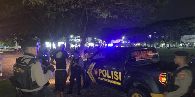 LHOKSEUMAWE – Tim Unit Reaksi Cepat (URC) Sat Samapta Polres Lhokseumawe mendatangi pemuda yang sedang nongkrong dan memberi himbauan Kamtibmas di halaman masjid Islamic Center Lhokseumawe, Sabtu (3/6/2023) malam.