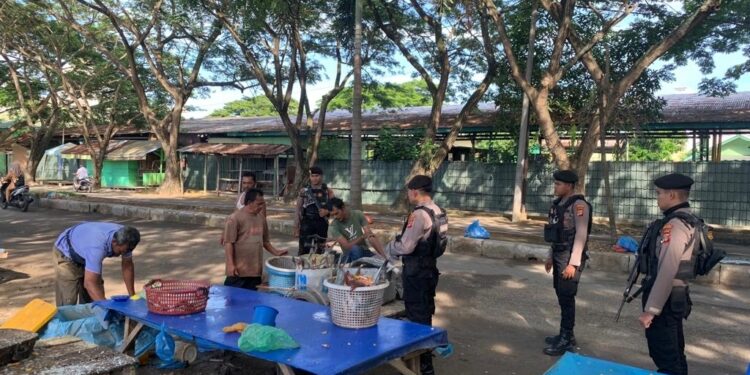 LHOKSEUMAWE – Tim Unit Reaksi Cepat (URC) Sat Samapta Polres Lhokseumawe melakukan patroli cegah aksi premanisme di kawasan pasar Pusong, Banda Sakti, Kota Lhokseumawe, Kamis (8/6/2023), dalam kegiatan ini personel memberi himbauan kepada pedagang.