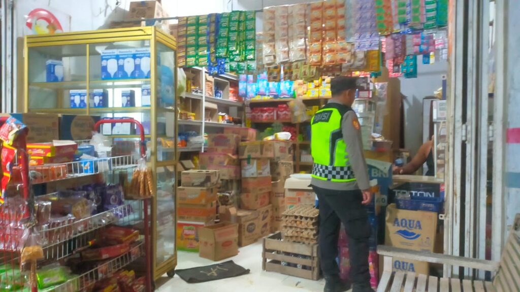 LHOKSEUMAWE – Personel Polsek Kuta Makmur melakukan patroli cegah gangguan Kamtibmas di pasar Keude Blang Ara, Kecamatan Kuta Makmur, Aceh Utara, wilayah hukum Polres Lhokseumawe, dalam kegiatan ini personel menyasar pedagang sembako, Senin (31/7/2023).