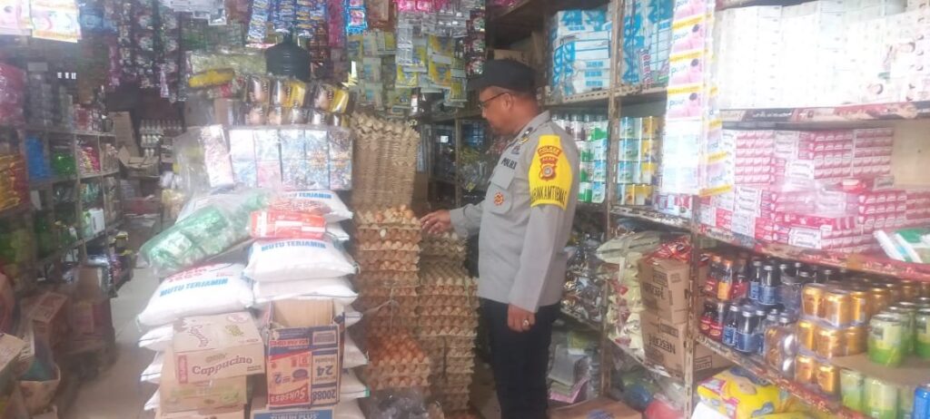 LHOKSEUMAWE – Personel Polsek Samudera melaksanakan patroli rutin dan memantau persediaan sembako di sejumlah pedagang di pasar Keude Geudong, Kecamatan Samudera, Aceh Utara, wilayah hukum Polres Lhokseumawe, Senin (19/2/2024).