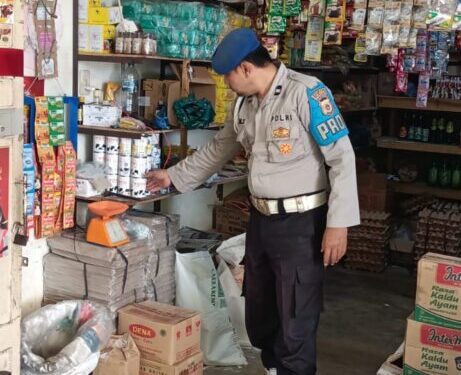 LHOKSEUMAWE – Personel Polsek Samudera melaksanakan patroli rutin dan menyambagi pedagang di toko sembako di pasar Keude Geudong, Kecamatan Samudera, Aceh Utara, wilayah hukum Polres Lhokseumawe, Kamis (25/1/2024).