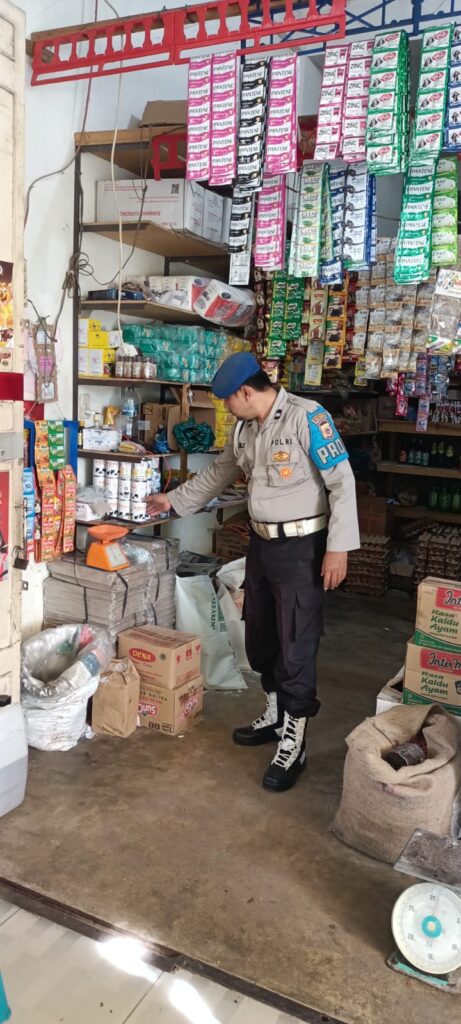 LHOKSEUMAWE – Personel Polsek Samudera melaksanakan patroli rutin dan menyambagi pedagang di toko sembako di pasar Keude Geudong, Kecamatan Samudera, Aceh Utara, wilayah hukum Polres Lhokseumawe, Kamis (25/1/2024).