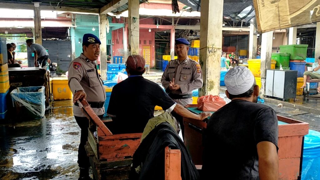 LHOKSEUMAWE – Personel Satpolairud Polres Lhokseumawe melaksanakan patroli rutin dan menyambagi masyarakat di kawasan pajak ikan Pusong, Kecamatan Banda Sakti, Kota Lhokseumawe, Jumat (24/11/2023).