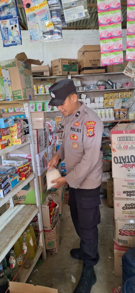 LHOKSEUMAWE – Personel Polsek Nisam melaksanakan patroli cegah gangguan Kamtibmas dan pengecekan stok sembako di pasar Meunasah Meucat, Nisam, Aceh Utara, wilayah hukum Polres Lhokseumawe, Kamis (28/12/2023).