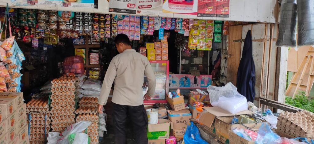 LHOKSEUMAWE – Personel Polsek Simpang Keuramat melakukan patroli rutin di pasar Keude Simpang Empat, Kecamatan Simpang Keuramat, Aceh Utara wilayah hukum Polres Lhokseumawe, Rabu (8/11/2023), dalam kegiatan tersebut personel mendatangi kedai sembako.