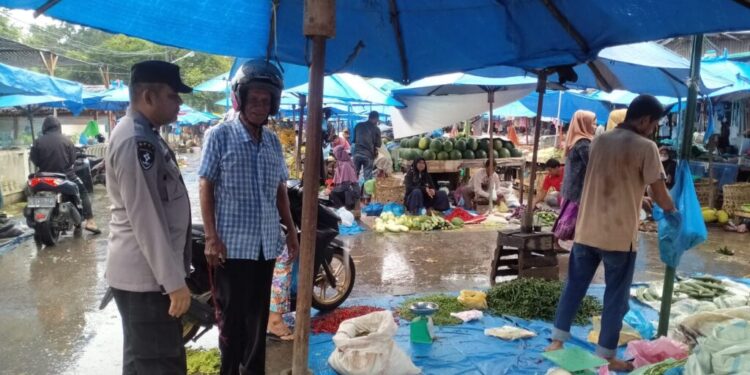 LHOKSEUMAWE – Personel Polsek Muara Satu melaksanakan patroli dialogis di kawasan pasar Batuphat, Kecamatan Muara Satu, Kota Lhokseumawe, Minggu (26/11/2023).
