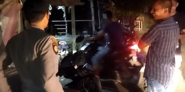 LHOKSEUMAWE – Personel Polsek Syamtalira Bayu melakukan patroli dialogis guna mengantisipasi gangguan Kamtibmas di seputaran Kecamatan Syamtalira Bayu, Aceh Utara, wilayah hukum Polres Lhokseumawe, Senin (22/5/2023) malam, dalam kegiatan ini personel juga menyampaikan himbauan kepada pemuda.