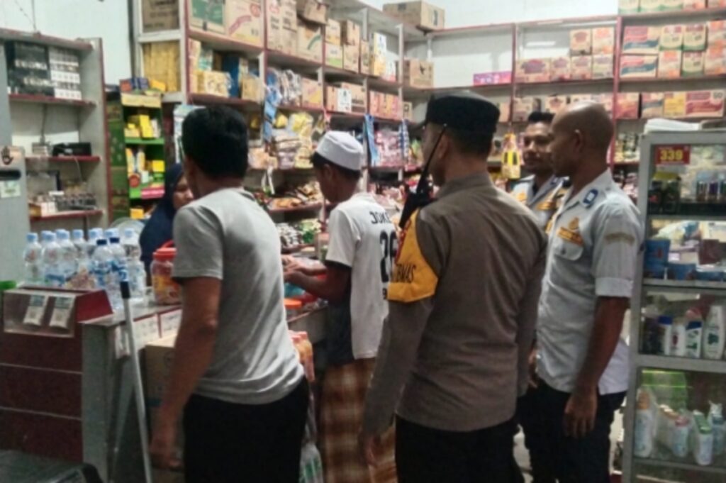 LHOKSEUMAWE – Personel Polsek Muara dua melaksanakan patroli dialogis pada malam hari di seputaran Kecamatan Muara Dua, Kota Lhokseumawe Lhokseumawe, Selasa (21/2/2023) malam.