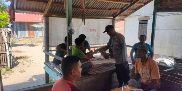 LHOKSEUMAWE – Patroli dialogis, personel Polsek Muara Satu menyambagi warga di Gampong Blang Naleung Mameh, Kecamatan Muara Satu, Kota Lhokseumawe, Kamis (6/7/2023).