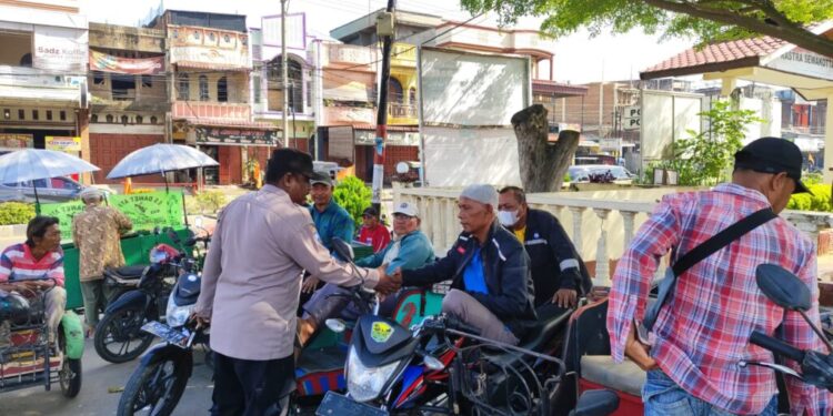 LHOKSEUMAWE – Polsek Muara Satu mengerahkan tiga personel guna melaksanakan patroli dialogis di seputaran Kecamatan Muara Satu, Kota Lhokseumawe, Sabtu (9/12/2023).