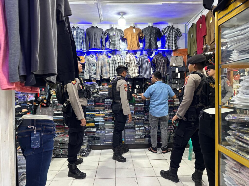 LHOKSEUMAWE – Personel Sat Samapta Polres Lhokseumawe melaksanakan patroli kota presisi, dalam kegiatan ini personel menyasar pedagang dan tempat publik di wilayah hukum Polres Lhokseumawe, Kamis (7/12/2023).