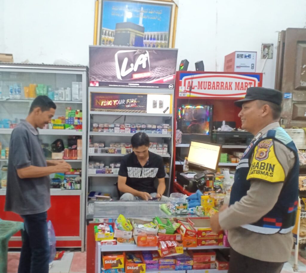 Lanjutnya, personel menyambangi pedagang di swalayan untuk menyampaikan pesan Kamtibmas. Personel meminta warga agar tetap menjaga kerukunan dan mendukung upaya Kepolisian dalam menjaga keamanan lingkungan masing – masing.