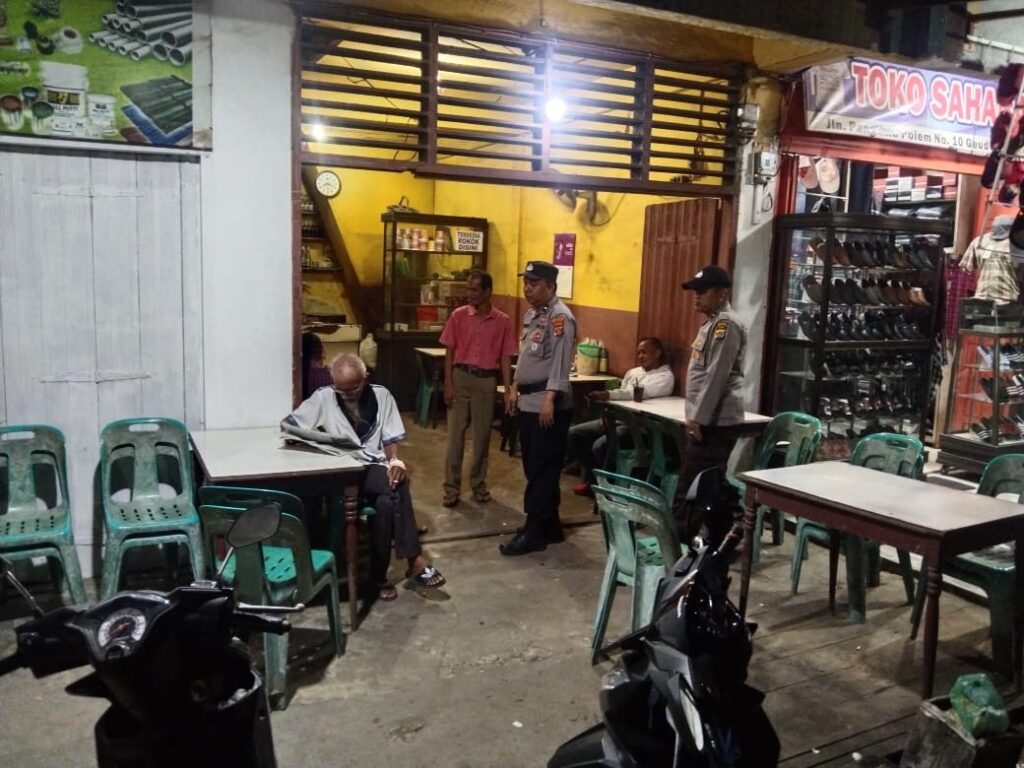 LHOKSEUMAWE – Personel Polsek Samudera melaksanakan patroli rutin di Keude Geudong, Kecamatan Samudera, Aceh Utara wilayah hukum Polres Lhokseumawe, Selasa (30/5/2023) malam.