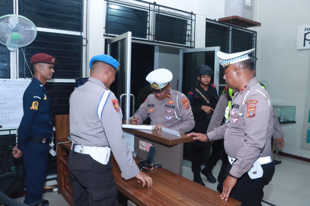 LHOKSEUMAWE – Personel gabungan Polres Lhokseumawe secara rutin melaksanakan Operasi Mantap Brata Seulawah 2023-2024 di wilayah hukum Polres Lhokseumawe, Rabu (20/12/2023) malam. Dalam kegiatan ini, personel sampaikan imbauan Kamtibmas di kantor KIP.