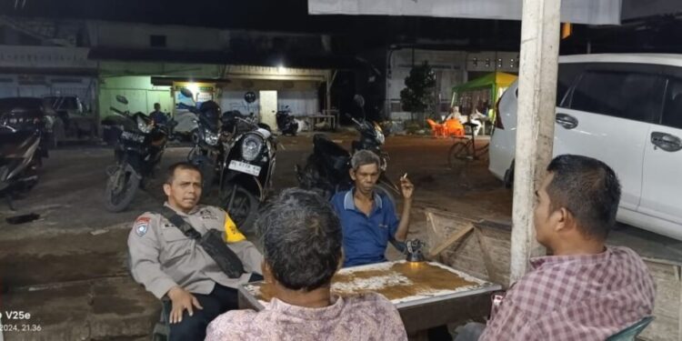 LHOKSEUMAWE – Personel Polsek Kuta Makmur menyampaikan pesan Kamtibmas kepada pemuda saat melaksanakan patroli rutin antisipasi gangguan Kamtibmas di seputaran Kecamatan Kuta Makmur, Aceh Utara, wilayah hukum Polres Lhokseumawe, selasa (31/7/2024) malam.
