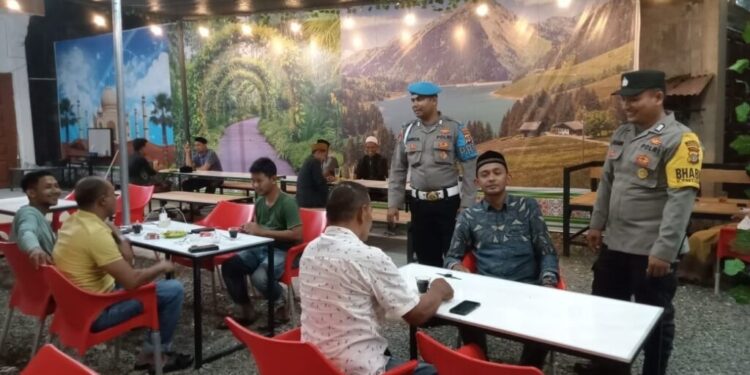 LHOKSEUMAWE – Personel Polsek Nisam melaksanakan patroli dan mendatangi warkop di Gampong Meucat, Kecamatan Nisam, Aceh Utara, wilayah hukum Polres Lhokseumawe, Sabtu (15/7/2023) malam.