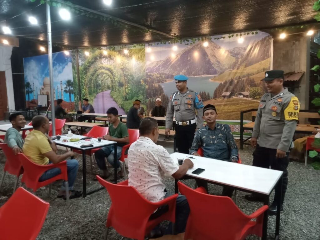 LHOKSEUMAWE – Personel Polsek Nisam melaksanakan patroli dan mendatangi warkop di Gampong Meucat, Kecamatan Nisam, Aceh Utara, wilayah hukum Polres Lhokseumawe, Sabtu (15/7/2023) malam.