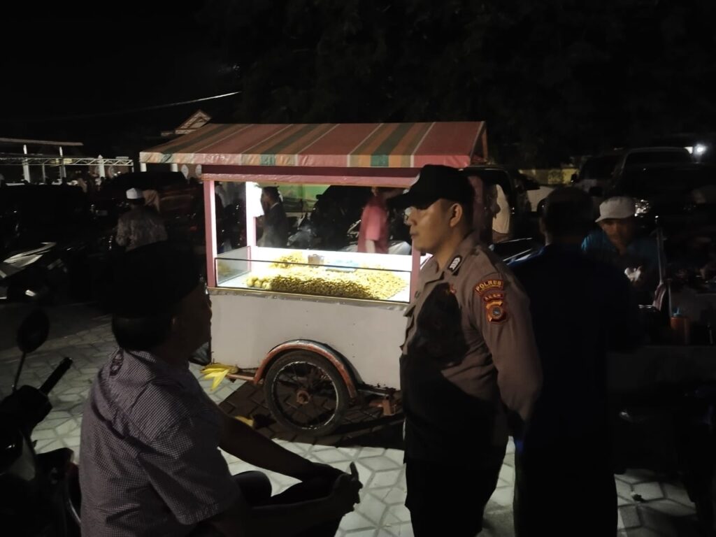 LHOKSEUMAWE – Patroli malam hari, personel Polsek Syamtalira Bayu menyambagi dan memberikan himbauan kepada pedagang di Keude Bayu, Aceh Utara, wilayah hukum Polres Lhokseumawe, Kamis (1/6/2023) malam.