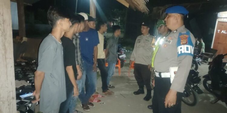 LHOKSEUMAWE – Personel Polsek Syamtalira Bayu menyambangi remaja saat melaksanakan patroli rutin di seputaran Kecamatan Syamtalira Bayu, Aceh Utara, wilayah hukum Polres Lhokseumawe, Rabu (7/2/2024) malam.