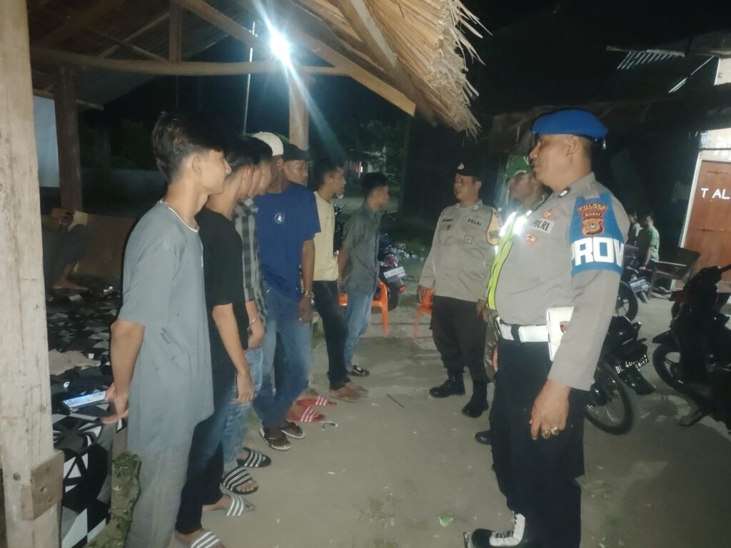 LHOKSEUMAWE – Personel Polsek Syamtalira Bayu menyambangi remaja saat melaksanakan patroli rutin di seputaran Kecamatan Syamtalira Bayu, Aceh Utara, wilayah hukum Polres Lhokseumawe, Rabu (7/2/2024) malam.