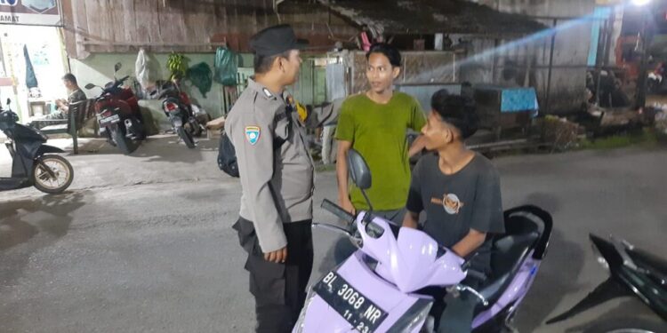 LHOKSEUMAWE – Personel Polsek Simpang Keuramat melaksanakan patroli rutin di seputaran Kecamatan Simpang Keuramat, Aceh Utara, wilayah hukum Polres Lhokseumawe, Jumat (27/10/2023) malam.