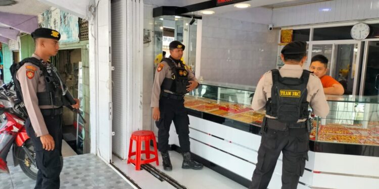 LHOKSEUMAWE – Tim patroli perintis presisi Sat Samapta Polres Lhokseumawe menyambagi Toko Emas di Kota Lhokseumawe, Minggu (39/10/2023).
