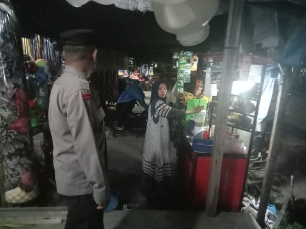 LHOKSEUMAWE – Personel Polsek Blang Mangat menyambagi masyarakat pada saat melaksanakan patroli rutin di gampong – gampong di Kecamatan Blang Mangat, Kota Lhokseumawe, Sabtu (1/7/2023) malam.