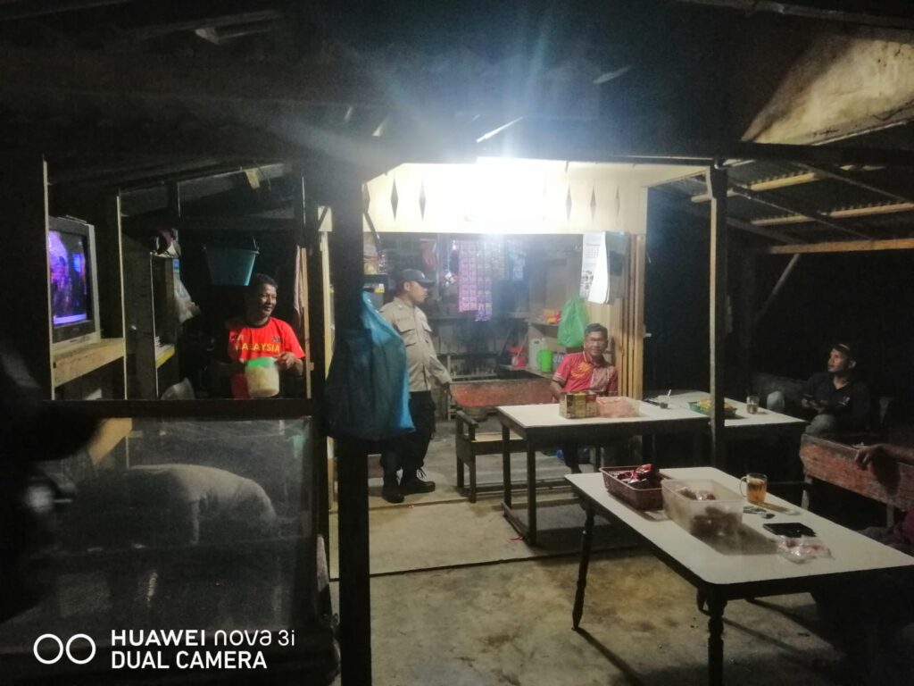 LHOKSEUMAWE – Personel Polsek Sawang melaksanakan patroli rutin cegah gangguan Kamtibmas dengan menyambagi warung milik warga di Kecamatan Sawang, Aceh Utara, wilayah hukum Polres Lhokseumawe, Sabtu (16/12/2023).