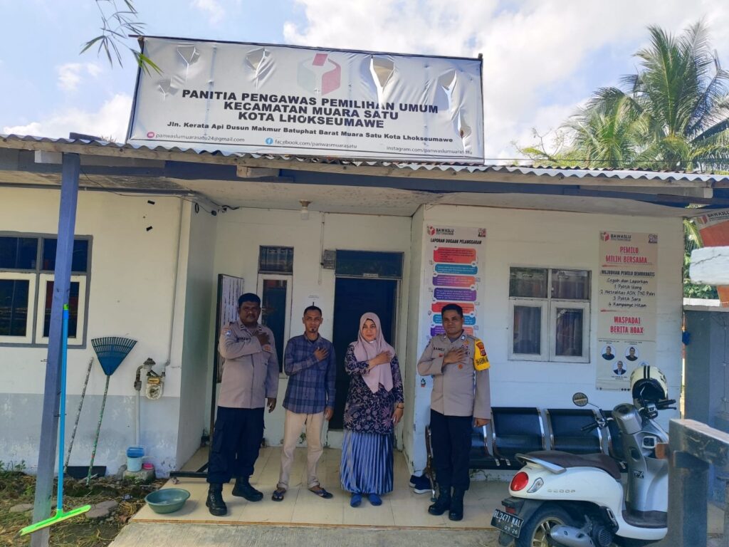 LHOKSEUMAWE – Personel Polsek Muara Satu melaksanakan patroli rutin, dalam kegiatan tersebut personel menyasar kantor panitia pengawas pemilihan kecamatan (Panwascam) Muara Satu, Kota Lhokseumawe, Kamis (1/2/2024).