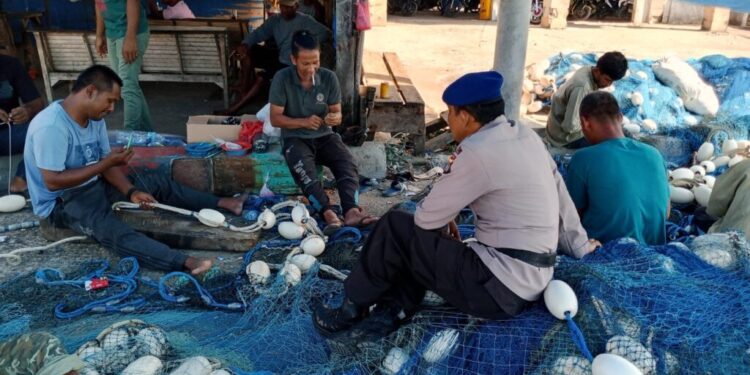 LHOKSEUMAWE – Personel Satpolairud Polres Lhokseumawe melaksanakan patroli dan menyambangi nelayan di kawasan PPI Pusong, Kecamatan Banda Sakti, Kota Lhokseumawe, Minggu (16/7/2023).